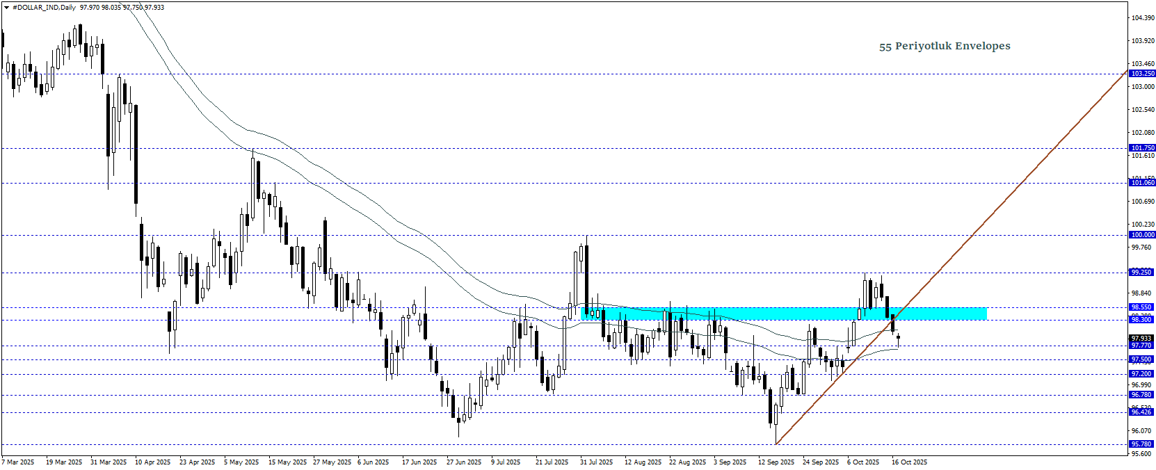 Klasik Dolar Endeksi, Eylül ortasından itibaren sürdürdüğü yükselen trendini kırarak 98,00 seviyelerinde seyrediyor ve teknik olarak negatif bir görünüm ortaya koyuyor. Endeksin 98,30 – 98,55 bölgesi altında fiyatlanmaya devam etmesi durumunda, 96,78 seviyelerine doğru geri çekilme potansiyeli gündemde kalmayı sürdürebilir. Buna karşın, bu düşüş hareketi yükseliş trendi içerisinde sağlıklı bir düzeltme olarak da değerlendirilebilir. Endeksin yeniden toparlanarak pozitif görünüme dönmesi için 98,55 üzerindeki kalıcılık kritik önemde olup, bu senaryoda 100 psikolojik seviyesine doğru hareketlenmesi beklenebilir.