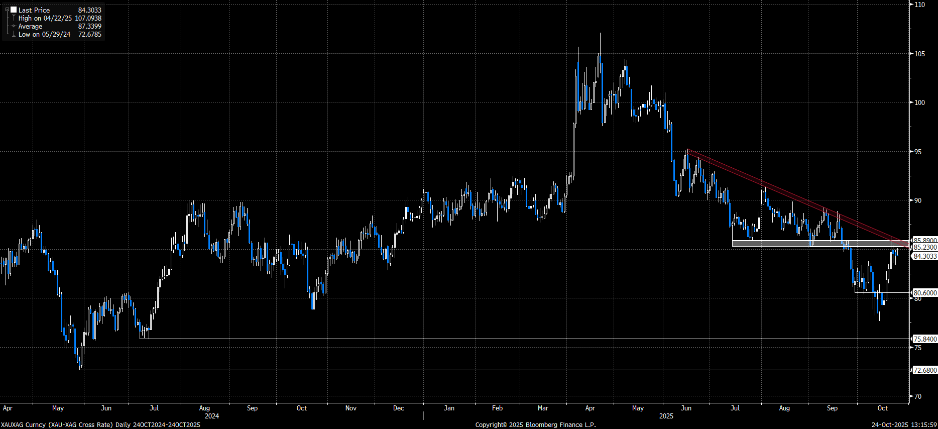 Geri çekilme sürecinde gümüşteki kayıpların altını aşmasıyla birlikte rasyoda yaşanan yükseliş, alçalan trend bölgesini test ediyor. 85,23–85,90 aralığı ve trend bölgesi altında kalındığı sürece, gümüşün altına kıyasla daha güçlü olduğu seyrini koruması beklenebilir. Bu görünüm geçerli kaldığı durumda, rasyoda 75,84 seviyesi gündeme gelebilir. Alternatif durumda ise, Nisan sonlarından bu yana oluşan düşüş eğilimi son bulabilir.
