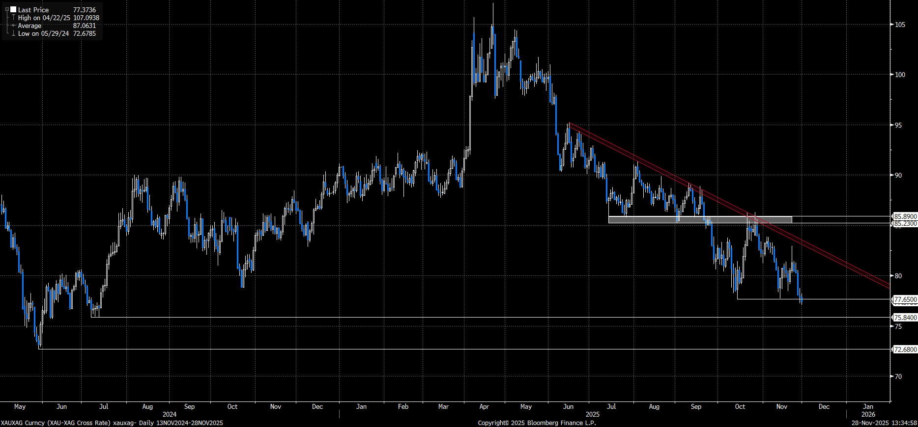 Rasyoda hafta boyunca gümüşün altına kıyasla daha güçlü durması sonucu, 77,65 seviyesinin altında kalıcılık oluşmak üzere. Bu seviyenin altında kaldığımız sürece 75,84 seviyesi gündemde kalmayı sürdürecek, yani gümüşün görece güçlü kalma ihtimali hala geçerli. Alternatif senaryoda ise altının gümüşe yeniden üstünlük kurması halinde alçalan trend kanalını takip ediyoruz. Bu bölge aşılmadığı sürece gümüş üzerindeki baskının devam etmesi beklenebilir.