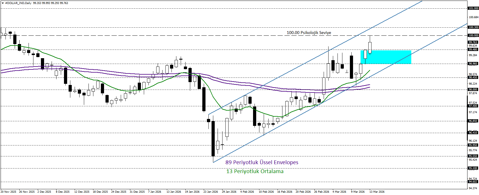 Klasik Dolar Endeksi, 99,80 seviyesi civarında yukarı yönlü eğilimi ile tamamlama yönünde bir görünüm sergilemektedir. Endeksin 98,96 – 99,48 bölgesi üzerinde tutunmayı sürdürmesi halinde, 101 seviyesine doğru bir yükseliş hareketi gündemde kalmaya devam edebilir. Ancak, bu bölgenin altında kalıcı fiyatlamaların gerçekleşmesi durumunda, aşağı yönlü hareket alanının 98,00 seviyesine kadar gerileme potansiyeli korunmaktadır.