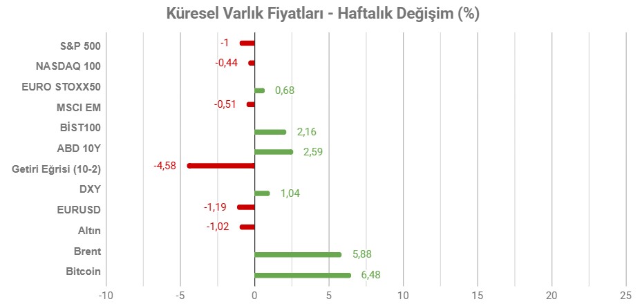 ABD tarafından yapılan açıklamalar, nükleer sorun çözülene kadar saldırıların devam edeceği izlenimini verirken, İran tarafı Hürmüz Boğazı’nın kapalı kalacağını belirtti. Özellikle enerji fiyatları, savaşın süresine bağlı olarak yukarı yönlü hareketini derinleştirebilir. Bu da önümüzdeki hafta gerçekleşecek yoğun merkez bankası programının ana gündemini oluşturacak. Savaşın kısa sürede bitmesi enflasyonda kısa süreli fakat etkili iz bırakabilecekken, sürecin uzaması riski kalıcı hale getirebilir.
