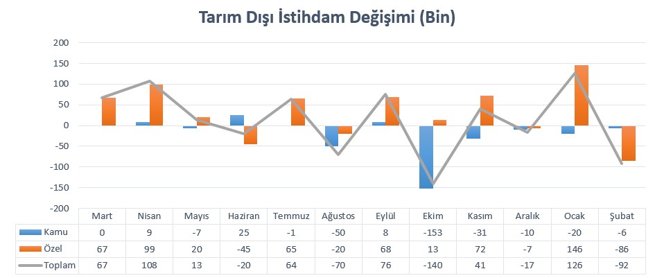 Genel olarak toparlanma, işverenlerin işe alımlara daha açık olduğunun görülmesi açısından pozitif. Dolayısıyla Şubat ayına ilişkin verilerdeki değişim bu şekilde yorumlanıyor olacak.