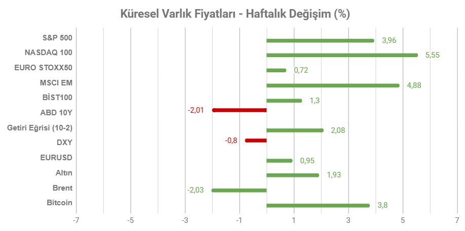 Ateşkese ilişkin umutlar ve bilanço sezonuyla birlikte küresel endeksler geride bıraktığımız hafta savaş öncesi seviyelerin de üzerine çıkmayı başardı. Genel olarak petrol tarafında da iyimserliğin etkili olduğu baskılı bir görünüm izlendi.