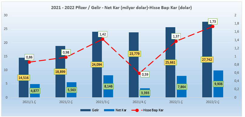 Pfizer’ın 2022 yılına ait üçüncü çeyrek finansal sonuçlarını ise 1 Kasım Salı günü piyasa açılışı öncesinde açıklaması bekleniyor. Şirketin bilanço beklentilerine geçmeden önce bir önceki çeyrek performansını hatırlayacak olursak;