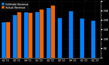 Şirketin gelirinin ilgili çeyrekte 21,116 milyar dolar olması bekleniyor. En yüksek tahmin 23,295 milyar dolar iken en düşük tahmin is 18,680 milyar dolar olarak karşımıza çıkıyor.