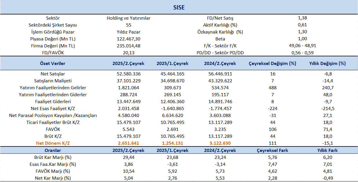 Şişe Cam (SISE) 2025 2.Çeyrek Bilanço Analizi