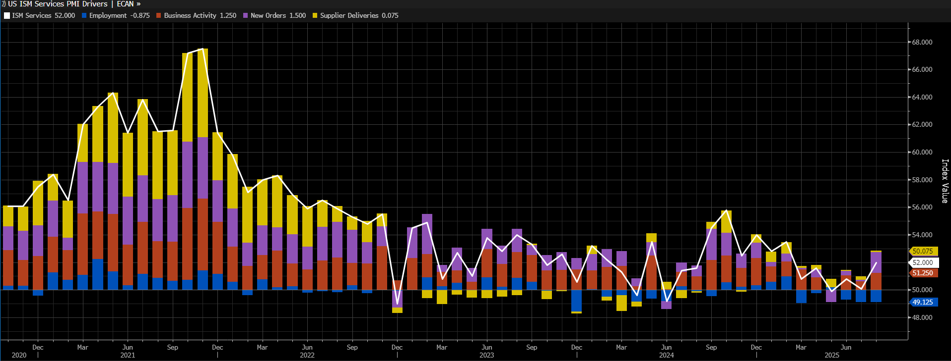 Hizmet PMI: istihdam, işletme aktivitesi, yeni siparişler ve tedarikçi teslimatları alt bileşenleriyle karşımıza çıkıyor. Bu veri seti ise hizmet sektöründeki (finans, sağlık, perakende vb.) aktiviteyi ölçüyor. ABD ekonomisinin yaklaşık %70'ini hizmetler oluşturduğundan, bu endeks ekonomi açısından daha önemli bir bakış açısı sunuyor.