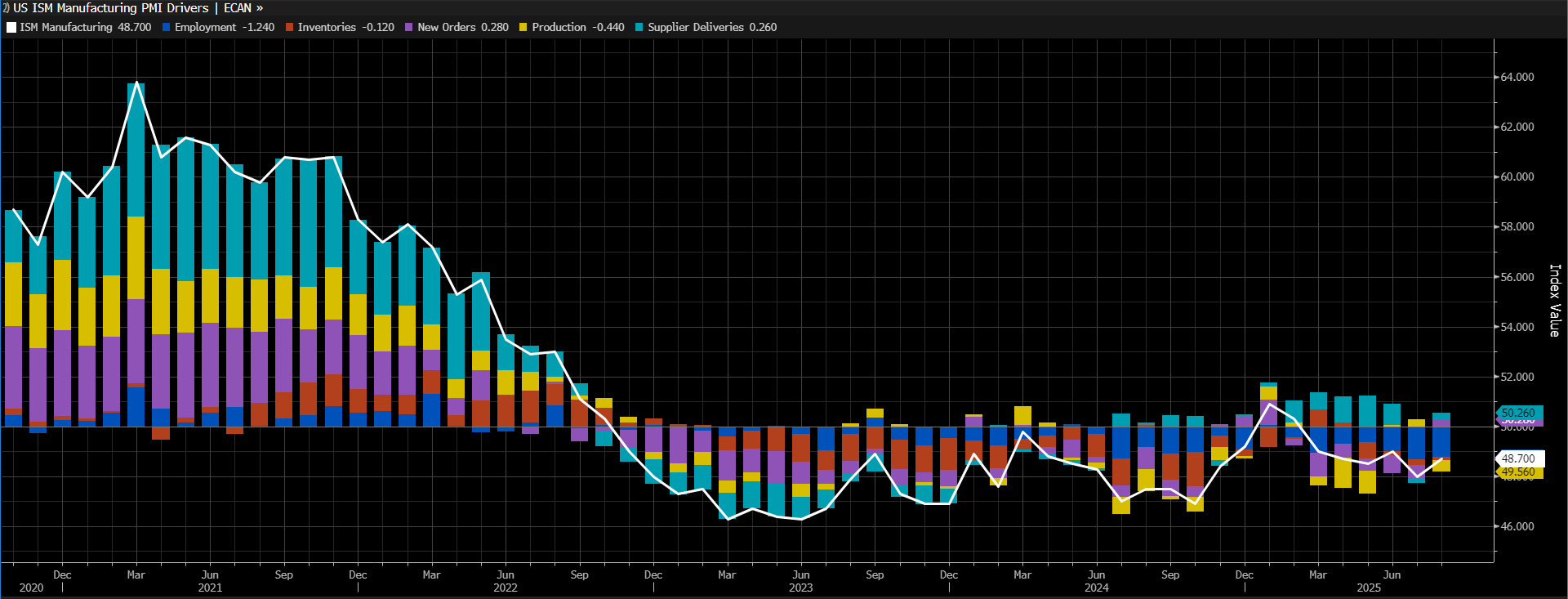 ISM imalat PMI; istihdam, stoklar, yeni siparişler, üretim ve tedarikçi teslimatları gibi alt bileşenlerden oluşuyor. Bu veri seti ABD imalat sektörünün genel gidişatını yansıtırken, diğer taraftan küresel taleple yakından ilişki barındırıyor.