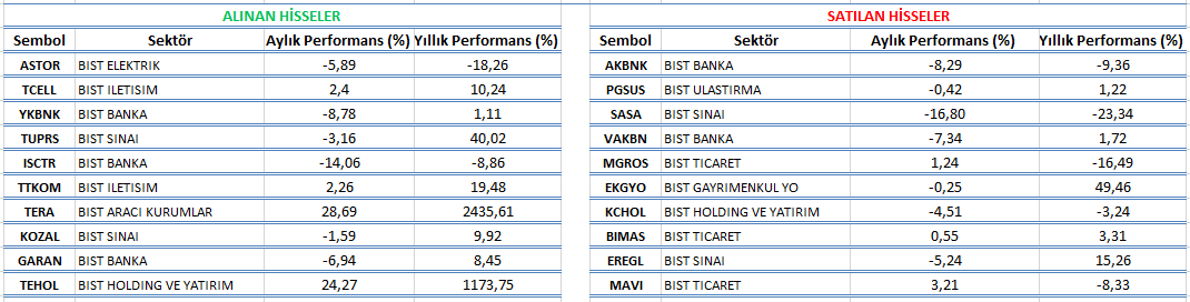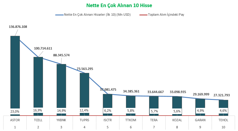 En çok alım ve satım yapılan hisseler aşağıdaki tablolarda belirtilmiştir:
