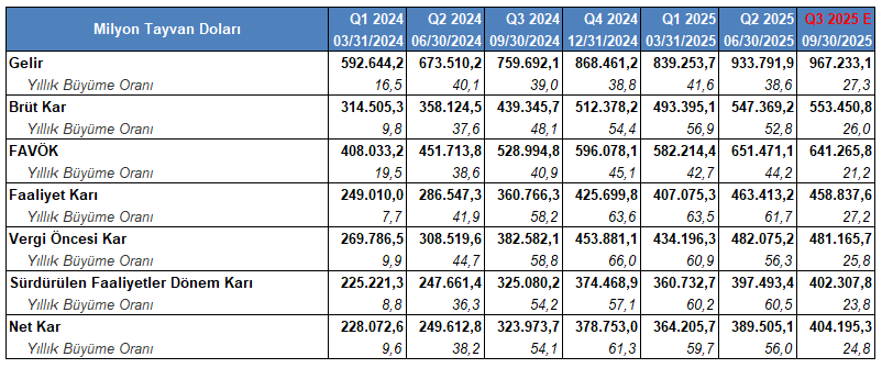 TSM’in yılın üçüncü çeyreğine yönelik marj öngörüleri; brüt kar marjı için %5,5 - %57,5 ve faaliyet kar marjı için %45,5 - %47,5 aralığında bulunuyor.