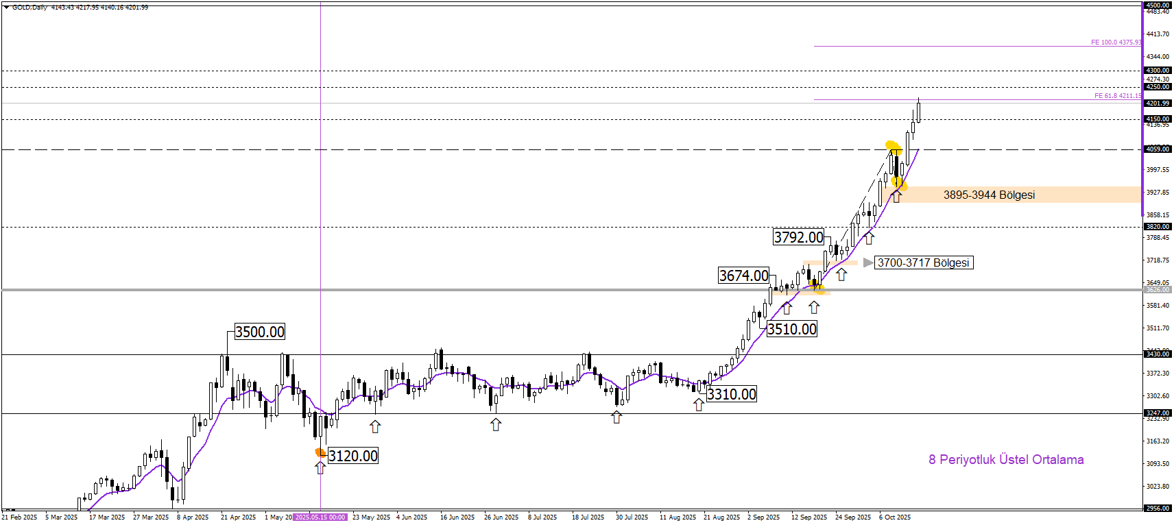 Destekleyici Faktörler: ABD–Çin arasındaki ticari gerilimler ve ABD hükümetinin kapalı kalma sürecinin uzaması gibi belirsizliği artıran durumlar altın fiyatlarını desteklemeye devam edebilir.