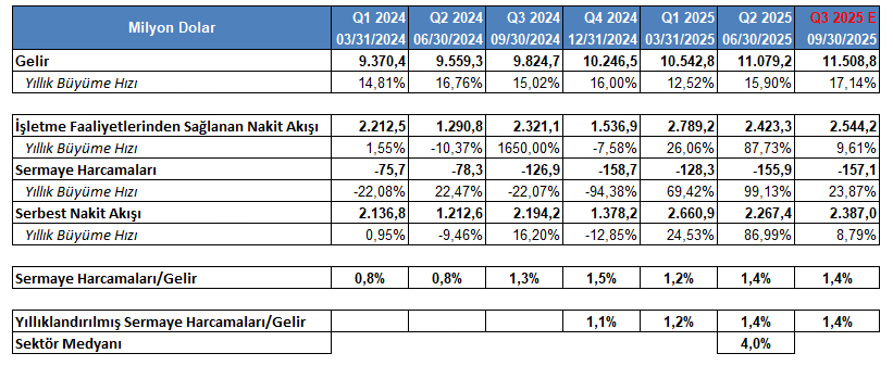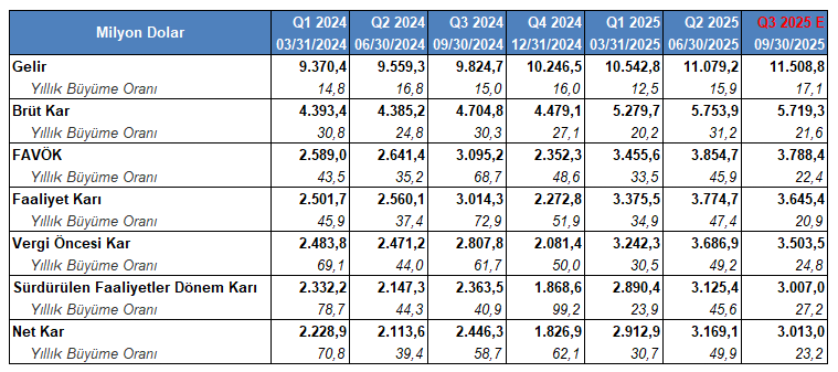 Buradan, şirketin üçüncü çeyreklik dönemine ait piyasa beklentilerine geçecek olursak;