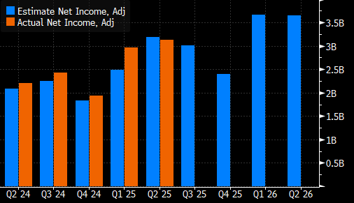 Net karın 3 milyar 13 milyon Dolar tutarında sonuçlanması bekleniyor. Beklentiler 3 milyar 69 milyon Dolar ile 2 milyar 888 milyon Dolar arasında yer buluyor. Beklentinin yakalandığı durumda, net karın yıllık %23,2 oranında yükselmesi düşünülüyor.