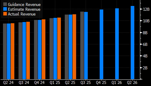 Gelirin 11 milyar 509 milyon Dolar tutarında gerçekleşmesi öngörülüyor. Beklentiler en yüksekte 11,6 milyar Dolar ve en düşükte 11 milyar Dolar ile yer alıyor. Beklentiye paralel sonucun, geliri yıllık bazda %17,1 oranında artırması öngörülüyor.