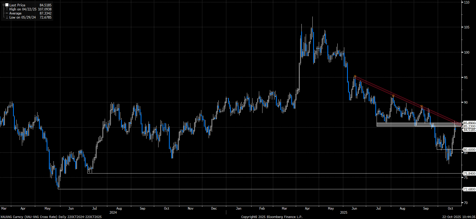 Gümüşteki kayıpların altını aşmasıyla birlikte rasyoda yaşanan yükseliş, alçalan trend bölgesinden tepkiyle karşılaştı. 85,23–85,90 aralığı ve trend bölgesi altında kalındığı sürece, gümüşün altına kıyasla daha güçlü seyrini koruması beklenebilir. Bu görünüm geçerli kaldığı durumda, rasyoda 75,84 seviyesi gündeme gelebilir. Alternatif durum olan 85,23–85,90 aralığı ve trend bölgesi üzerinde fiyatlamalarda altının tekrardan gümüşten iyi performans gerçekleştiği dönemlere gelebiliriz.