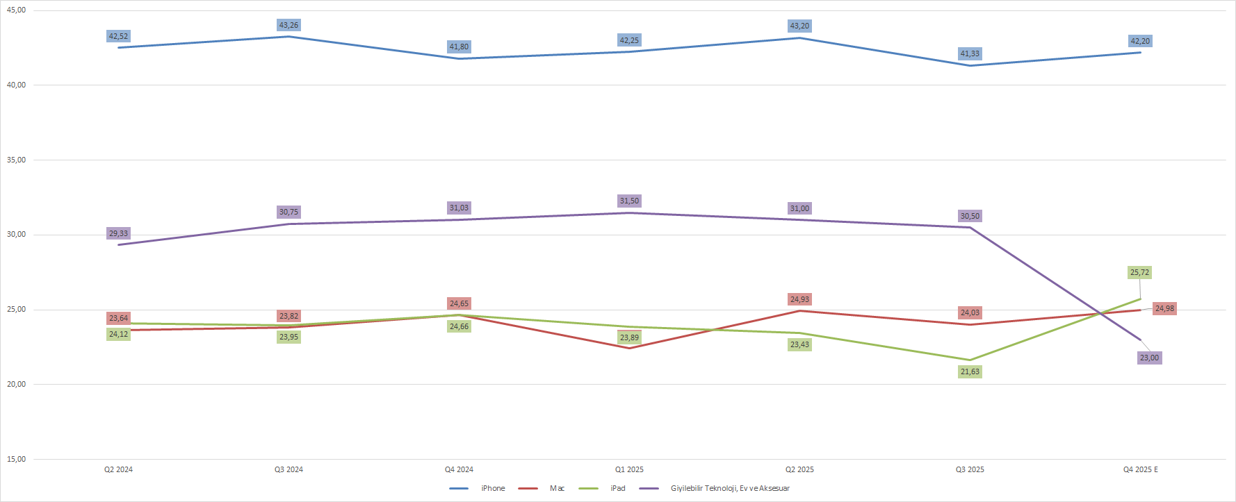 Ürün segmentinde de iPhone gelirlerinin, toplam şirket gelirinin %47,41’sını (44,582 milyar Dolar) oluşturması dikkatleri çekiyor. Bu birim yıllık bazda %13,45 oranında büyüme gösterirken; ürünler arasında en büyük yıllık büyümeyi %14,79 ile Mac birimini öne çıkarıyor.