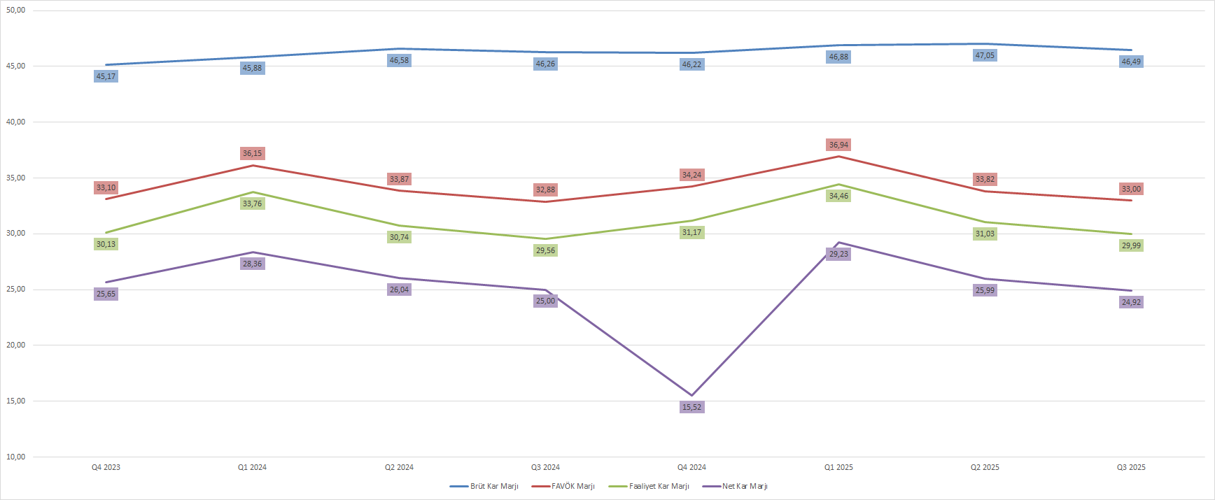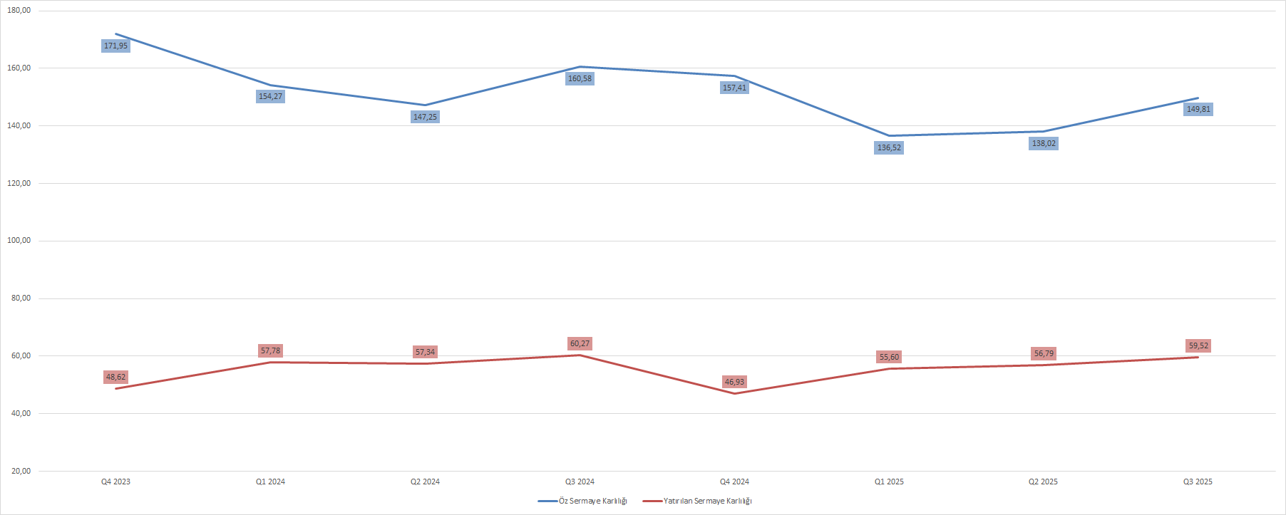Yıldan yıla durum ele alındığında; marjlardakine benzer görünüm şirketin karlılık oranlarında da karşımıza çıktı. Çeyreklik bazda yükselen eğilime rağmen, yıldan yıla bakıldığında öz sermaye karlılığında %6,7 oranında gerileme söz konusu oldu. Yatırılan sermaye karlılığında ise %1,2 oranında baskı hissedildi.