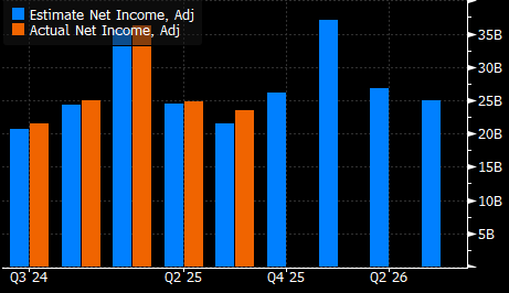 Net karın 26 milyar 182 milyon Dolar tutarında sonuçlanması bekleniyor. Beklentiler 27,68 milyar Dolar ile 23,93 milyar Dolar arasında yer buluyor. Beklentinin yakalandığı durumda, net karın yıllık %4,8 oranında yükselmesi düşünülüyor.