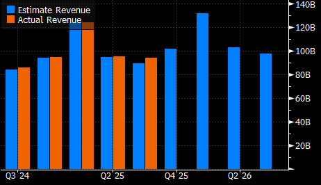 Gelirin 102 milyar 71 milyon Dolar tutarında gerçekleşmesi öngörülüyor. Beklentiler en yüksekte 107,79 milyar Dolar ve en düşükte 97,85 milyar Dolar ile yer alıyor. Beklentiye paralel sonucun, geliri yıllık bazda %7,5 oranında artırması öngörülüyor.