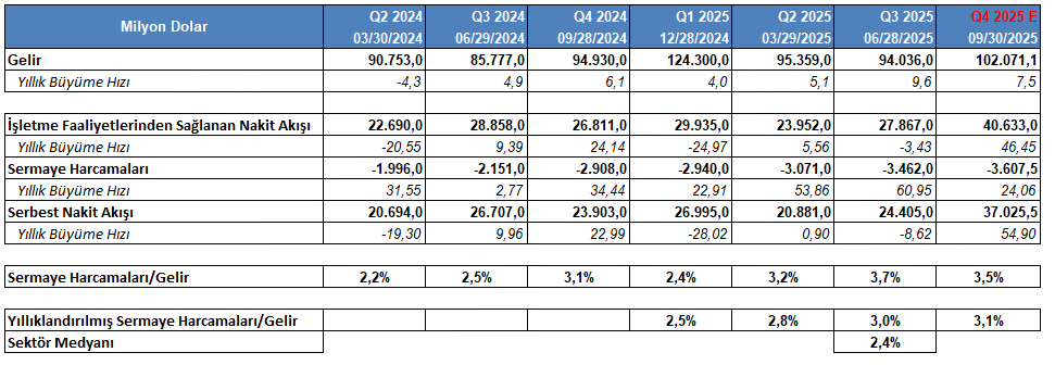Apple mali 2025 yılı üçüncü çeyreğinde işletme faaliyetlerinden 27 milyar 867 milyon Dolar nakit akışı sağlarken, bu tutarın 3 milyar 462 Dolarını sermaye harcamalarına yönlendirdi. Bu durumun sonucunda şirketin serbest nakit akışı 24 milyar 405 milyon Dolar tutarında karşımıza çıktı. Serbest nakit akışı yıllık bazda %8,62 oranında daralma yaşadı.