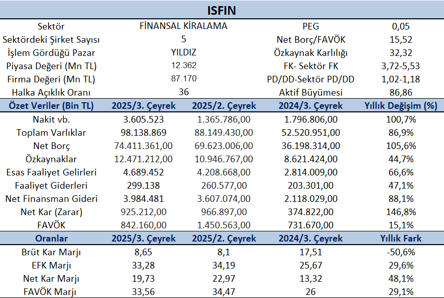 İş Finansal Kiralama (ISFIN) 2025 3. Çeyrek Bilanço Analizi