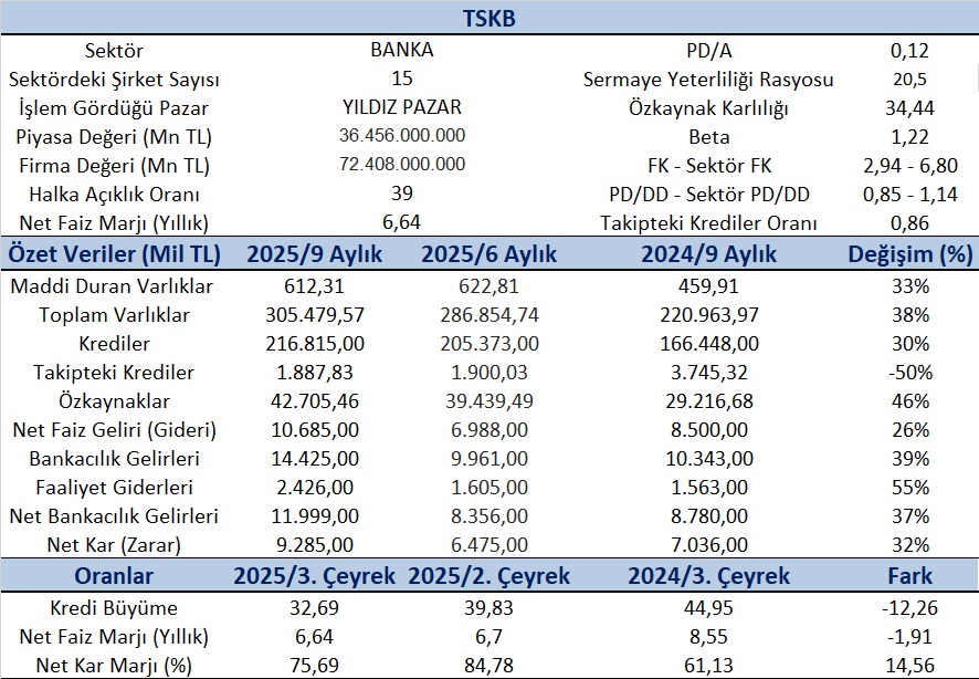Türkiye Sınai Kalkınma Bankası (TSKB) 2025 3. Çeyrek Bilanço Analizi