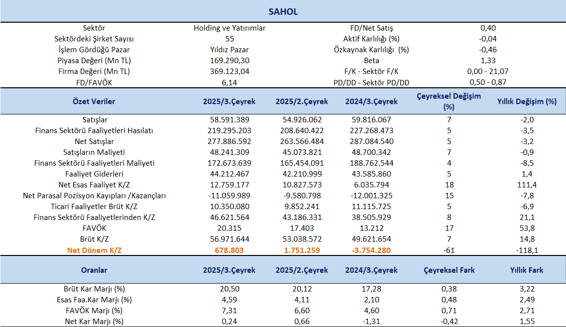 SAHOL 2025/3.Çeyrek Bilanço Analizi