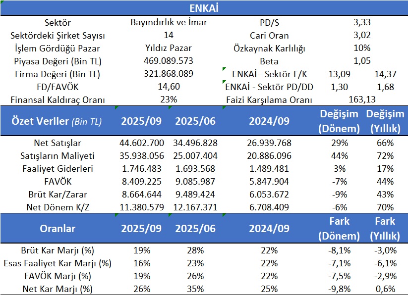 Enka İnşaat (ENKAI) 2025 3.Çeyrek Bilanço Analizi