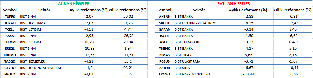 Not: Tablolar Borsa İstanbul verileri baz alınarak hazırlanmıştır.