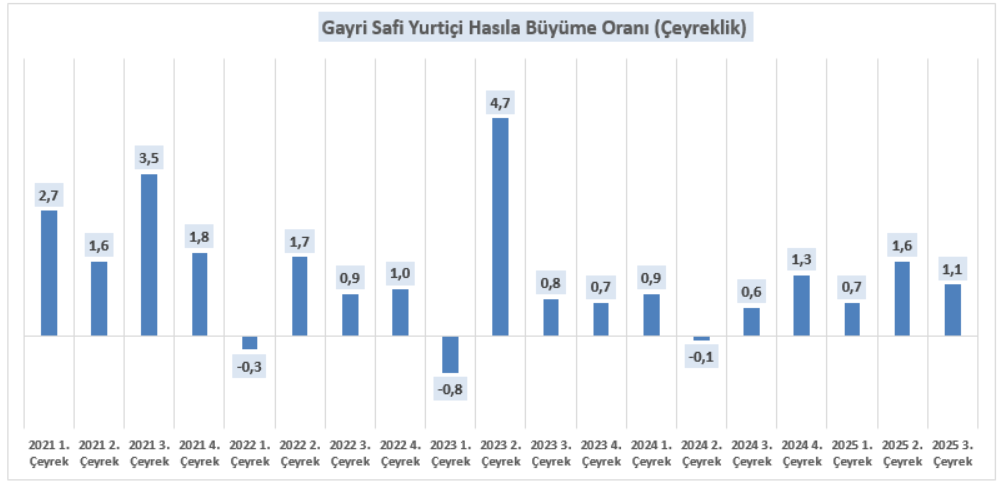 Türkiye ekonomisi 2025 3.çeyrekte yıllık %3,7 bir önceki çeyreğe göre ise %1,1 büyüdü.
