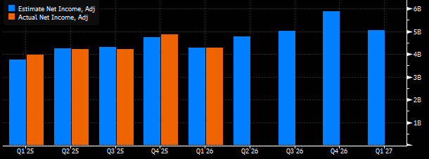 Net karın 4 milyar 762 milyon Dolar tutarında sonuçlanması bekleniyor. Beklentiler 4,95 milyar Dolar ile 4,62 milyar Dolar arasında yer buluyor. Beklentinin yakalandığı durumda, net karın yıllık %14,3 oranında yükselmesi düşünülüyor.