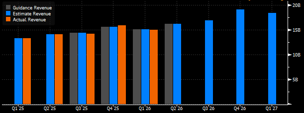 Gelirin 16 milyar 203 milyon Dolar tutarında gerçekleşmesi öngörülüyor. Beklentiler en yüksekte 16,4 milyar Dolar ve en düşükte 16 milyar Dolar ile yer alıyor. Beklentiye paralel sonucun, geliri yıllık bazda %15,3 oranında artırması öngörülüyor.