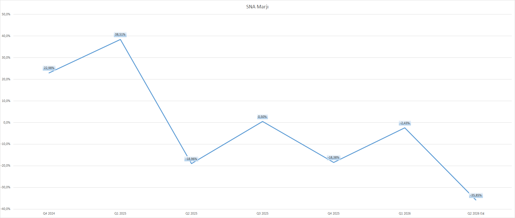 Bu durum şirketin serbest nakit akış marjına da yansıyor. Serbest nakit akış marjı geçen yılın aynı döneminde %38,51 oranında karşımıza çıkarken, son açıklanan çeyreklik dönem itibariyle -2,43% oranında bulunuyor. Piyasa beklentilerine göre marjın açıklanacak sonuçlarda %35,85 oranına gerilemesi bekleniyor.