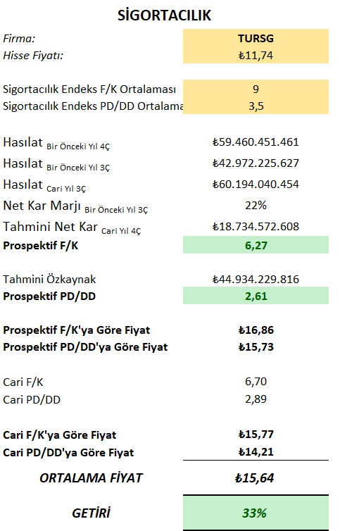 Ülkemizin sigortacılık sektöründe lider olan ve model portföyümüzde yer alan TURSG göreceli değerleme yaklaşımlarına göre hedef fiyatımız olan 11,83 TL’yi 15,64 TL’ye %33 getiri potansiyeli ile güncelliyoruz.