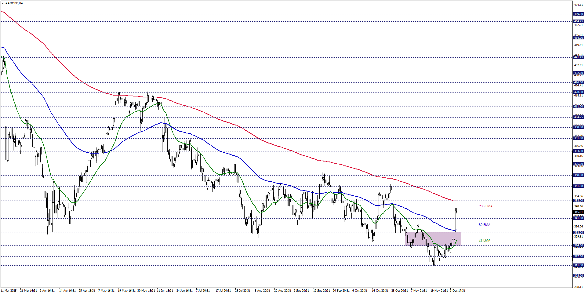 Adobe hisse fiyatını kısa vadede teknik açıdan değerlendirdiğimizde, 21 ve 89 periyotluk üstel hareketli ortalamanın desteklediği 324,00 – 332,00 aralığın takip etmekteyiz. Hisse fiyatı ilgili aralık üzerinde tutunmayı sürdürdüğü müddetçe, alıcılı eğilim korunabilir. Yukarı yönlü ivmelenmelerin devam etmesi halinde 352,00 ve 361,00 direnç noktalarına doğru hareketler gözlenebilir.