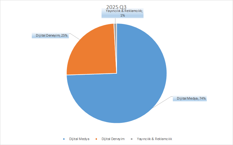 Bu segmentler arasında yıllık bazda en yüksek büyümeyi %11,6 oranıyla dijital medya elde ederken; bunu %9 büyümeyle dijital deneyim izledi. Yayıncılık ve reklamcılık segmenti ise %10 oranında daralma yaşadı.