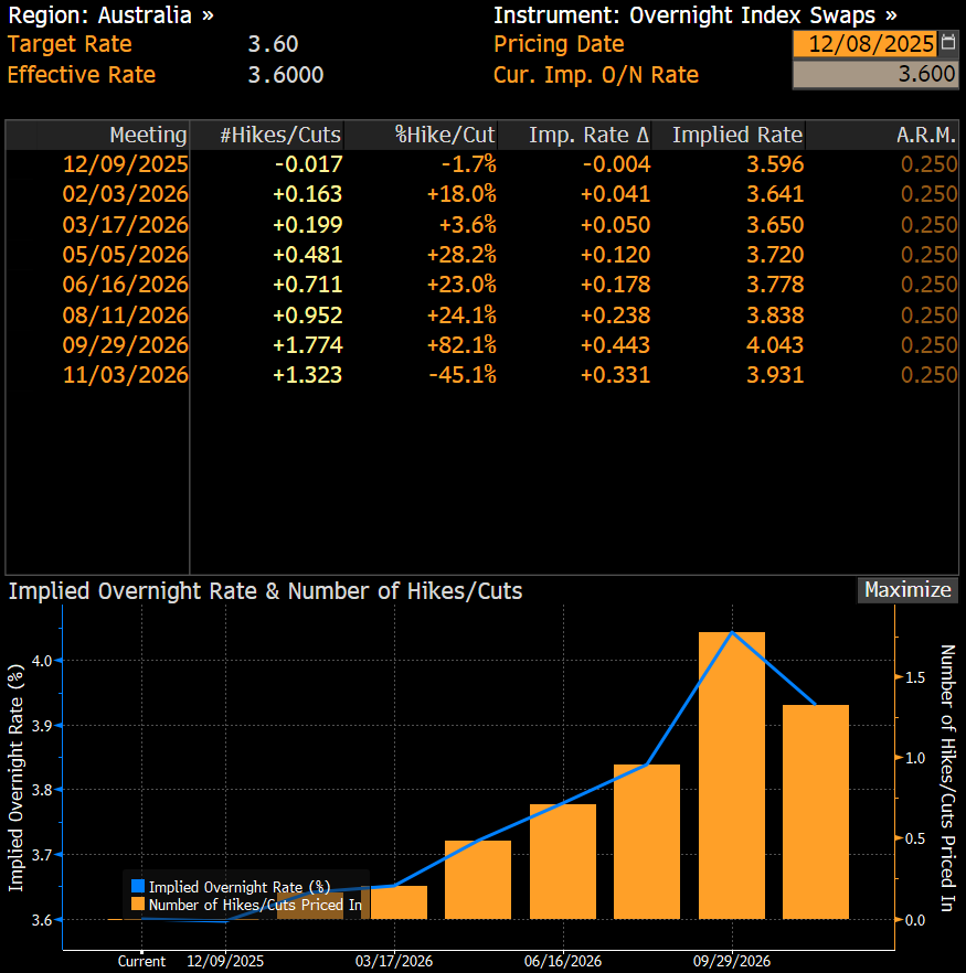 Swap piyasaları, RBA’nın Salı günkü toplantıda politika faizini bir kez daha %3,60 seviyesinde sabit bırakmasını neredeyse kesin olarak fiyatlıyor. Bu nedenle, karar metnindeki tonlama ve ileriye dönük yönlendirme de en az faiz kararının kendisi kadar Avustralya doları açısından belirleyici olacak gibi görünüyor. Kararı ve toplantı sürecini yakından izlemeyi sürdüreceğiz.