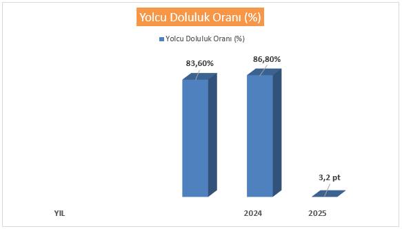 - Kasım 2024 döneminde yurt içi yolcu doluluk oranı %83,60 iken Kasım 2025’te 3,2 puan artışla %86,80 olarak gerçekleşti.