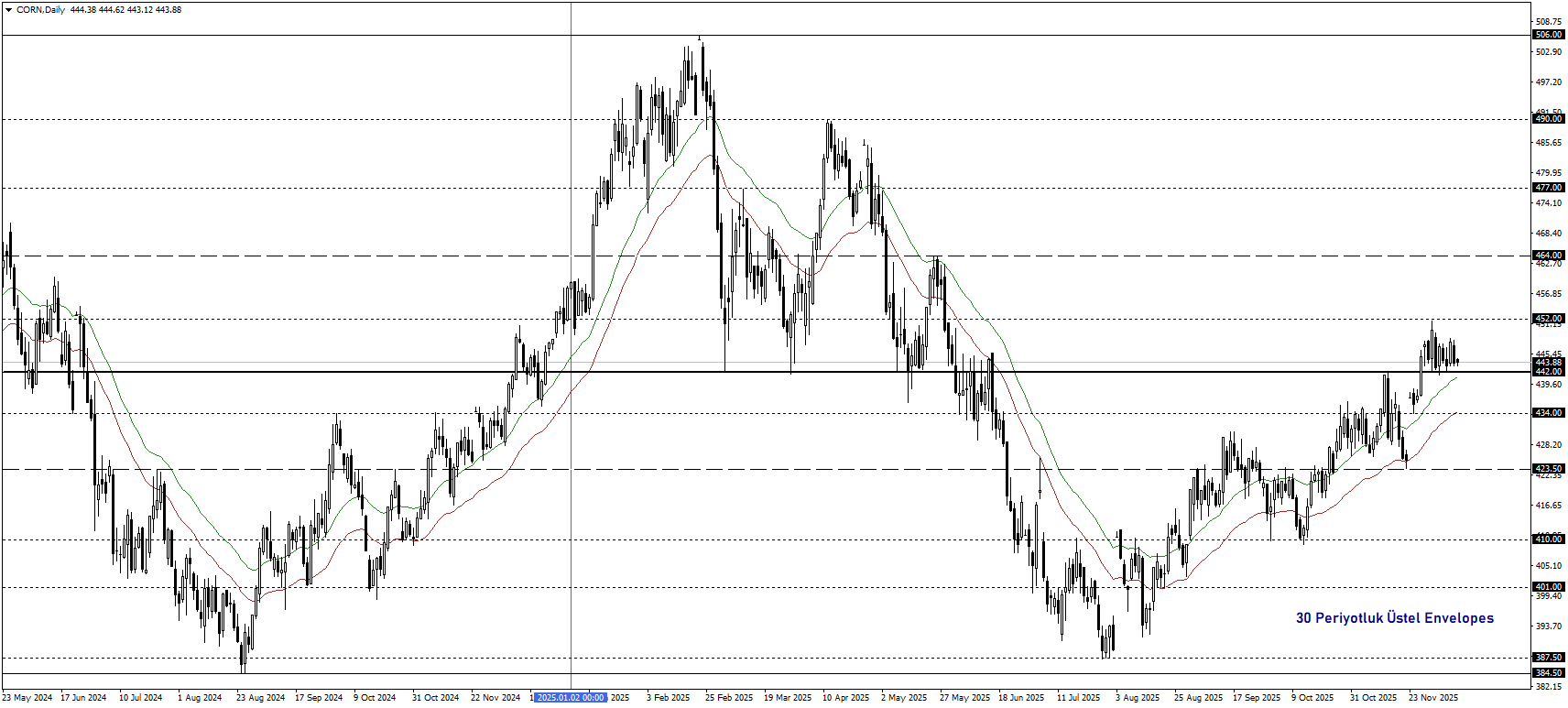 Aralık 2025 itibarıyla, küresel mısır piyasasında arz hala güçlü. USDA’nın yeni tahminlerine göre hem ABD üretimi hem de küresel stok beklentisi yüksek. Fiziksel arz kısıtlılığı ve hızlı teslimat talebi nedeniyle fiyatlar tekrar 450 dolar seviyelerini test etti Bu durum, arz fazlasının yarattığı baskıya rağmen geçici likidite sıkışıklığı, teslimat tarafındaki daralma ve talep kaynaklı etkenlerin fiyatlarda kırılgan bir denge oluşturduğunu gösteriyor. Biyoyakıt ve yem talebi gibi kullanım kalemlerinde devam eden baskı, arz-talep dengesinde potansiyel destek unsuru olurken stok ve arz tahminlerindeki revizeler bu dengeyi bozan önemli değişkenler oluyor.