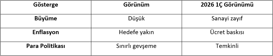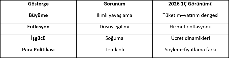 2026 1Ç, düşük büyüme ve katı enflasyon dengesinde, kontrollü gevşeme ve seçici risk alma dönemine işaret ediyor.
