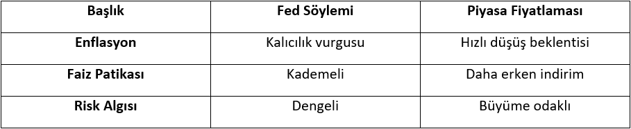 2026 yılının ilk çeyreğine küresel piyasalarda oynaklığı ana kaynaklarından birinin, merkez bankalarının iletişimde sunduğu içerik ile piyasa fiyatlamaları arasındaki farklar olabilir. Bu durum, özellikle faiz hassasiyeti yüksek varlıklarda fiyatlamaları hızlandırma potansiyeli taşıyabilir.