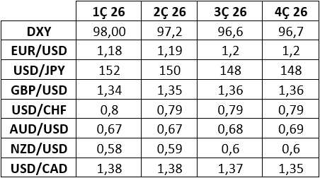 2026’nın önemli konularından biri Fed Başkanı Powell’ın görev süresinin bitmesi ve oy hakkı sahibi üyelerin sayılarındaki değişim olacak. Bölgesel Fed üyelerinden yeni gelen iki üye Hammack ve Logan’ın şahin, Logan’ın güvercin, Kashkari’nin ise nötr üyelerden olduğu biliniyor. Dolayısıyla bu değişimler de politika kararlarına etki edebileceği için yakından takip edilecek. Yeni Fed Başkanının ise Trump ile ilişkilerinin iyi biri olacağı tahminiyle, güvercin bir politika benimseyeceği tahmin ediliyor.
