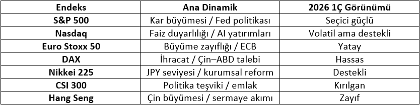 2026 yılının ilk çeyreği, güçlü bir toparlanma ya da sert bir bozulma sunmaktan ziyade, dengede fakat kırılgan bir makro ortamı işaret etmektedir. Bu nedenle yatırım stratejilerinde yön tahmininden çok, senaryo bazlı esneklik ve risk yönetimi ön plana çıkmaktadır.