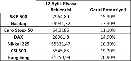 Bu bölümde öne varlıkları, ekonomik göstergelere karşı hassasiyetine göre değerlendirmeye çalışıp, 2026’nın ilk çeyreğinde baz senaryoya göre nasıl bir ilerleme sağlayabileceği tahminlerini derlemeye çalıştık. Hedef fiyatlar bölümünde, Bloomberg’de analistlerin paylaştığı tahminlerin medyan değerleri görülmektedir. Tüm bu tahminler ve fiyat bilgileri, 31 Aralık 2025 tarihindeki piyasa kapanışı verilerine dayanmaktadır.