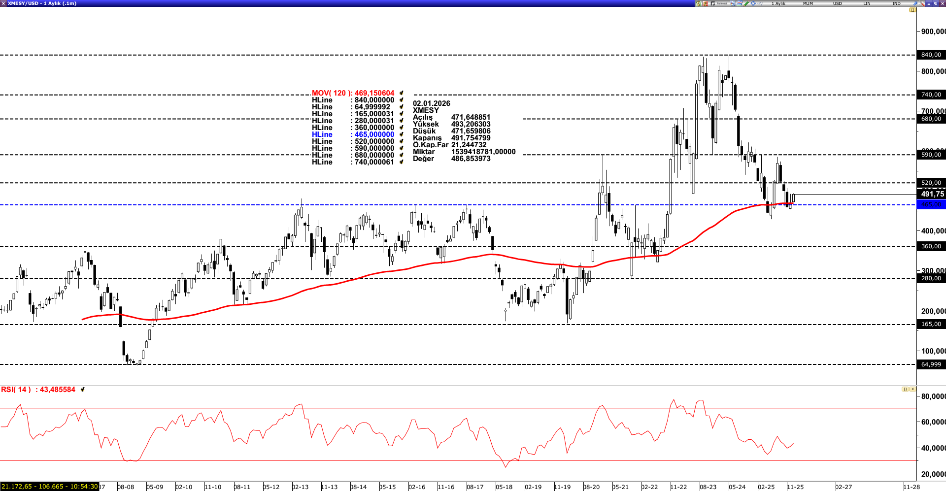 Teknik Bakış; Son dönemde 590 dolar seviyesinden satış baskısı gören sektör, 120 aylık ortalamanın geçtiği 465 dolar seviyesinde destek buldu. Yukarı yönlü hareketin sürdürülebilmesi açısından 520 dolar seviyesinin üzerinde kalıcılık önemini koruyor. Bu seviyenin aşılması durumunda, fiyatın yeniden 590 dolar direnç seviyesine doğru ivme kazanması beklenebilir. Öte yandan, olası aşağı yönlü baskılarda 120 aylık ortalama (469,15) seviyesi güçlü bir destek konumunda bulunuyor. Ancak bu seviyenin altına sarkılması halinde, realizasyon süreci derinleşerek 360 dolar seviyesinin gündeme gelme riskini artırabilir.