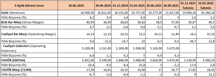 EBITDA marjı orta vadede toparlanma sinyali veriyor: EBITDA marjı %17–18 bandına doğru Bloomberg beklentisi ile ön plana çıkarken, bu eğilim verimlilik artışı ve yüksek katma değerli segmentlerin payındaki artışla desteklenmektedir.