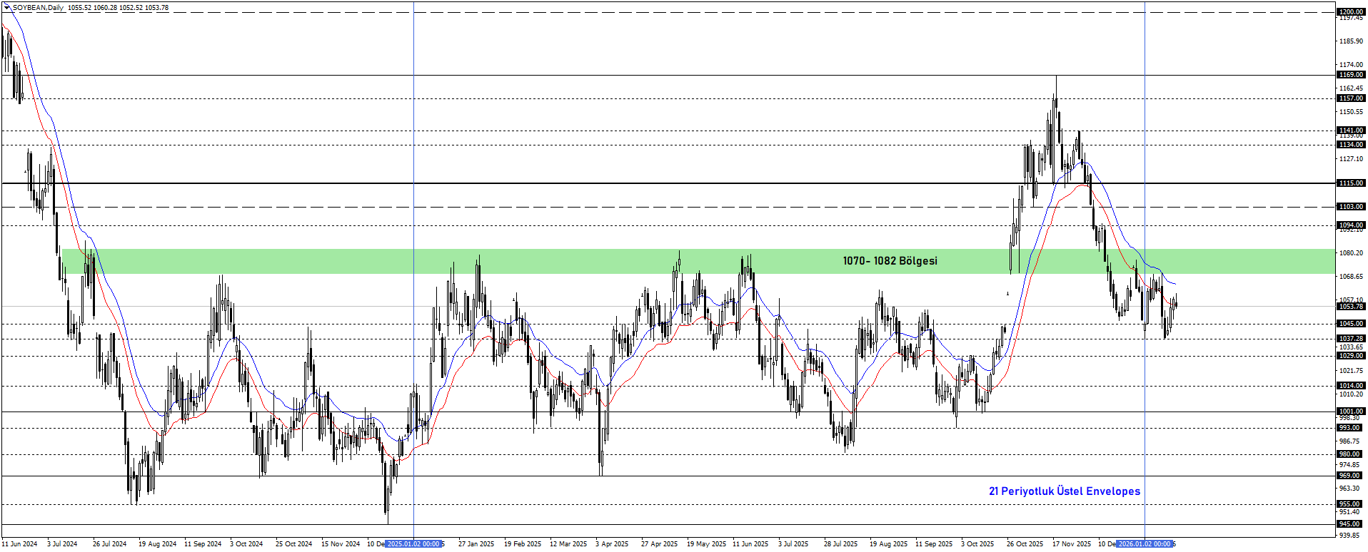 Alternatif Senaryo: Üretimde yaşanabilecek aksaklıklar veya talebin daha da canlanmasıyla fiyatların toparlanması halinde, Envelopes(21) ve 1070–1082 bölgesi üzerinde kalıcılık sağlanması negatif görünümü baskılayabilir. Bu senaryoda 1103 ve 1115 seviyeleri gündeme gelebilir.