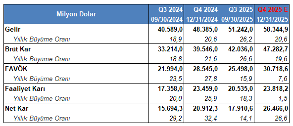 Buradan, şirketin dördüncü çeyreklik dönemde sunacağı bilançoya dair piyasa beklentilerini ele alan Bloomberg anketini incelersek;
