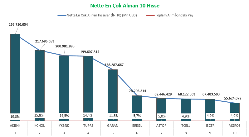 En çok alım ve satım yapılan hisseler aşağıdaki tablolarda belirtilmiştir: