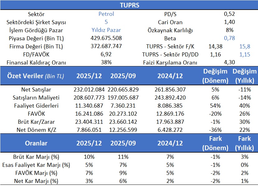Tüpraş Türkiye Petrol Rafinerileri (TUPRS) 2025 4. Çeyrek Bilanço Analizi